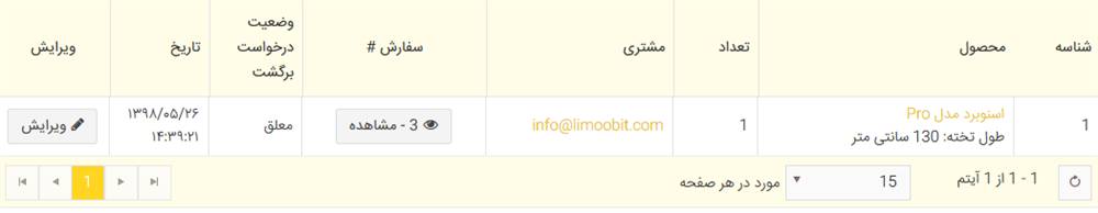 • ویرایش : شما می توانید دلیل مرجوع کردن محصول، وضعیت درخواست برگشت و .. را مشاهده و یا ویرایش کنید.